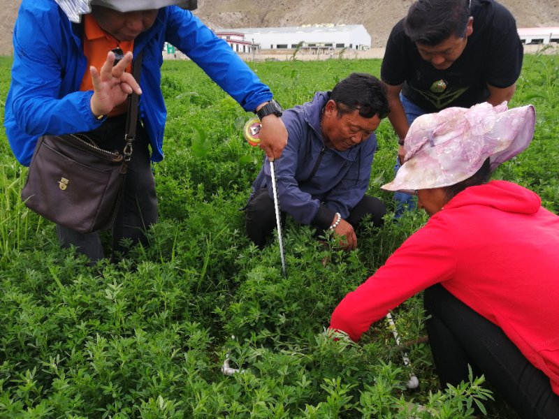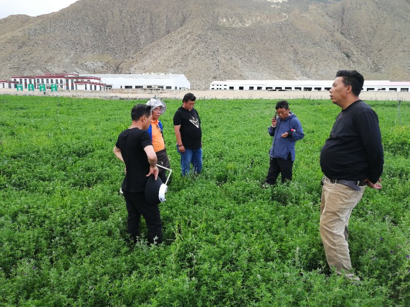 隨后,次仁云丹老師在紫花苜蓿種植現場(chǎng),就第一期收割后復蘇管理、濕草翻曬、儲藏等問(wèn)題,與西藏江平公司技術(shù)人員進(jìn)行溝通交流,并提出了許多寶貴意見(jiàn)。