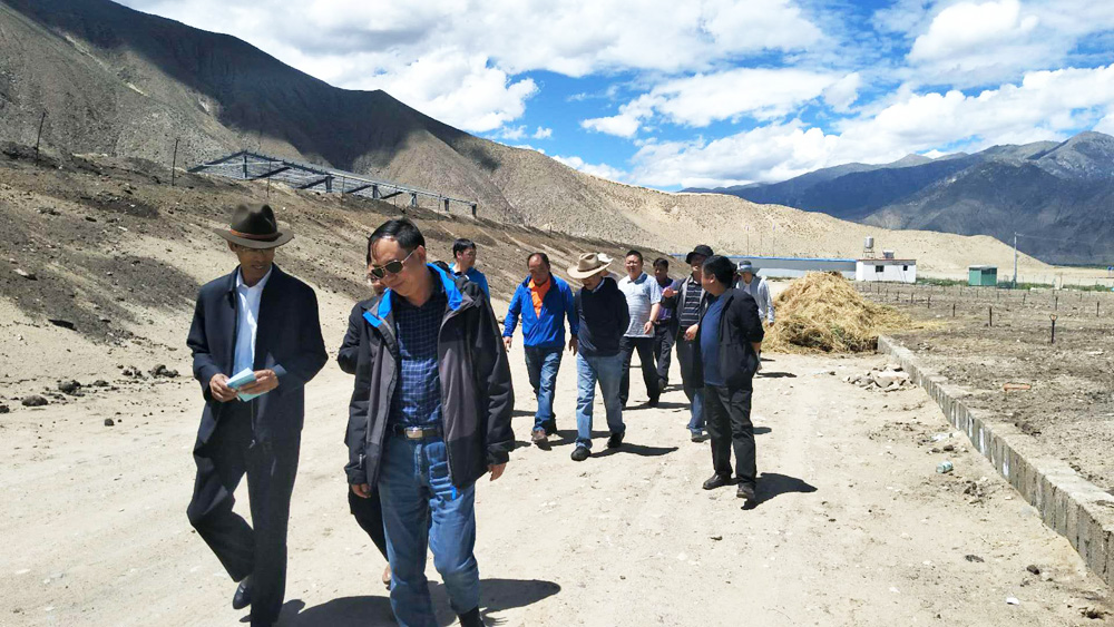7月3日下午,西藏自治區人民政府潘旭春副秘書(shū)長(cháng),自治區農牧科學(xué)院尼瑪扎西院長(cháng),自治區農牧廳林木副廳長(cháng),山南市人民政府索朗曲巴副市長(cháng),山南市農牧局何華局長(cháng),山南市農技推廣中心次仁老師,扎嚢縣人民政府次仁羅布副縣長(cháng),扎嚢縣農牧局普布頓珠局長(cháng)等自治區、市、縣領(lǐng)導到西藏江平農業(yè)有限責任公司(以下簡(jiǎn)稱(chēng)“西藏江平公司”)桑耶草場(chǎng)項目現場(chǎng)進(jìn)行參觀(guān)、檢查指導。