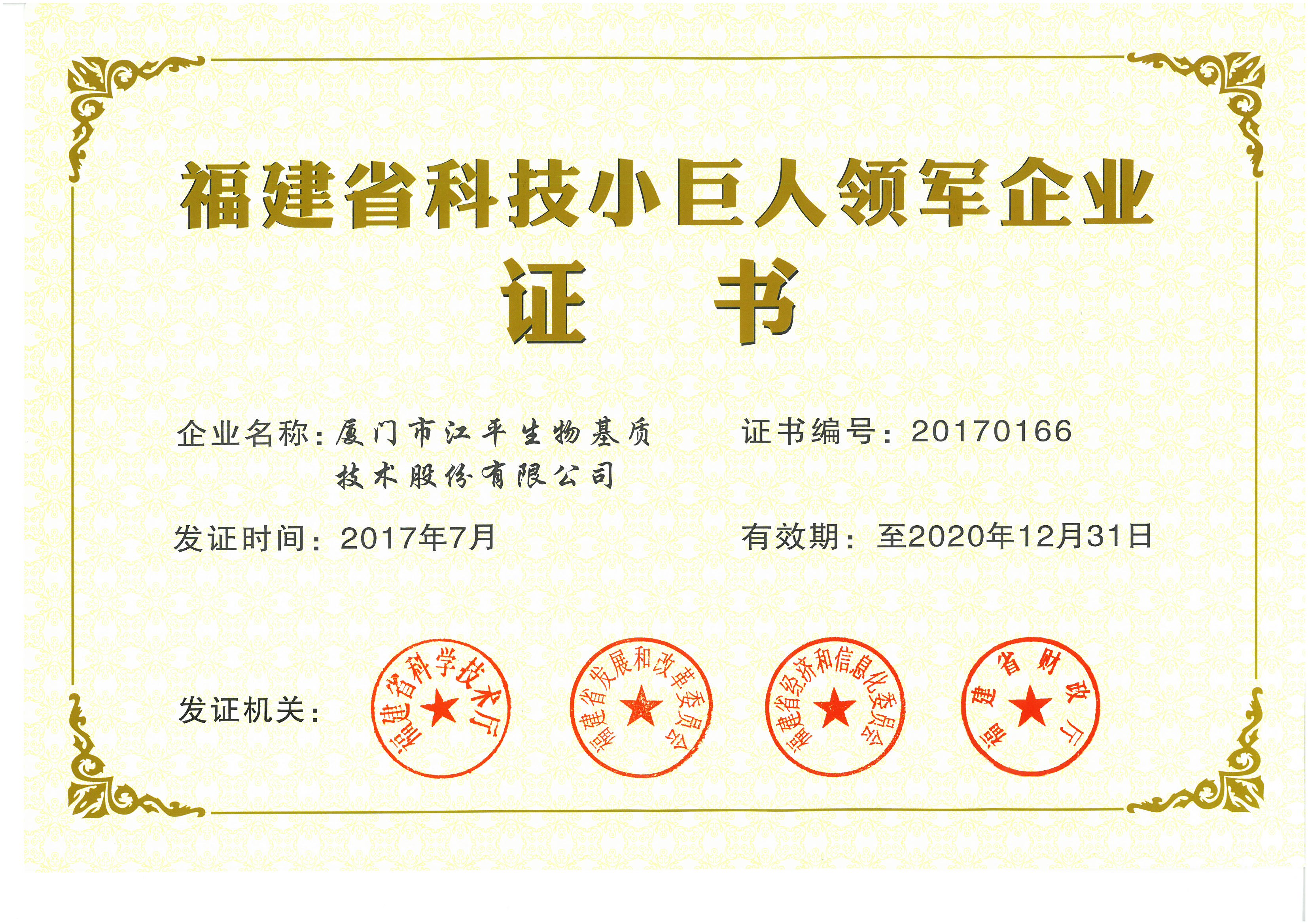 經(jīng)福建省科技廳合規性審查、專(zhuān)家評審和科技小巨人企業(yè)培育工作聯(lián)席會(huì )議辦公室成員單位聯(lián)合審核,我司作為國內生物基質(zhì)的行業(yè)領(lǐng)先企業(yè),依靠始終研發(fā)擁有自主知識產(chǎn)權的技術(shù)創(chuàng  )新策略和優(yōu)異成果,順利從福建省科技小巨人領(lǐng)軍企業(yè)眾多參評名單中脫穎而出。
