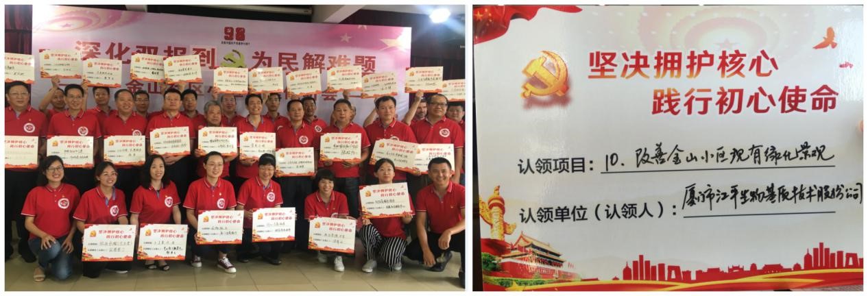 宣誓過(guò)后,各政企單位在金山社區的組織下,以“深化雙報到、為民解難題”為主題,進(jìn)行了金山社區小區治理傾聽(tīng)會(huì )。會(huì )上,各單位領(lǐng)導共同發(fā)表了小區治理的意見(jiàn),江平生物副總裁鐘曉輝也在會(huì )上積極提出自己的想法,并代表公司認領(lǐng)了治理項目:改善金山小區現有綠化景觀(guān)。