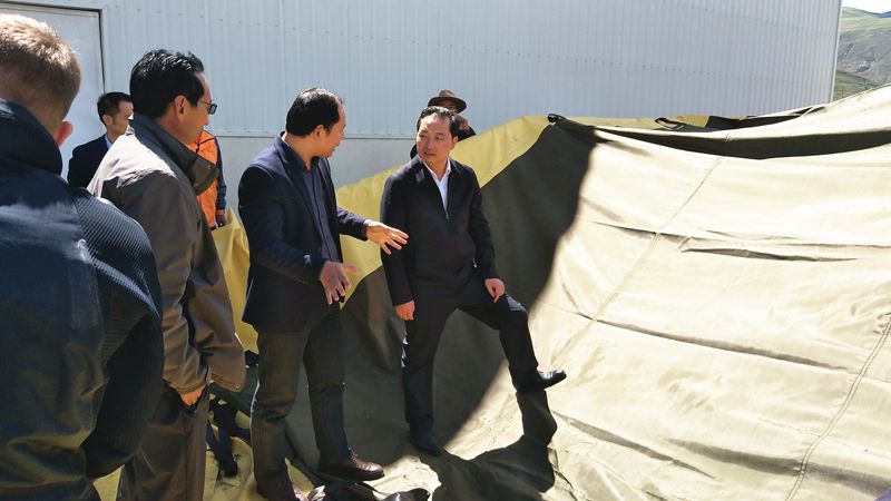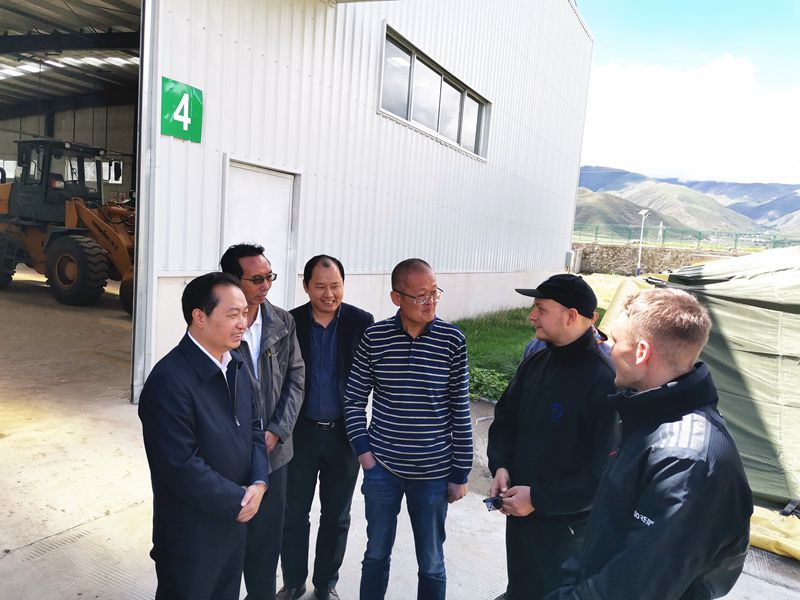 調研現場(chǎng)正逢兩位外國工程師在基質(zhì)廠(chǎng)安裝UTV膜,吳巨培一行與兩位專(zhuān)家親切交流,感謝他們不遠千里而來(lái)對援藏工作的支持。