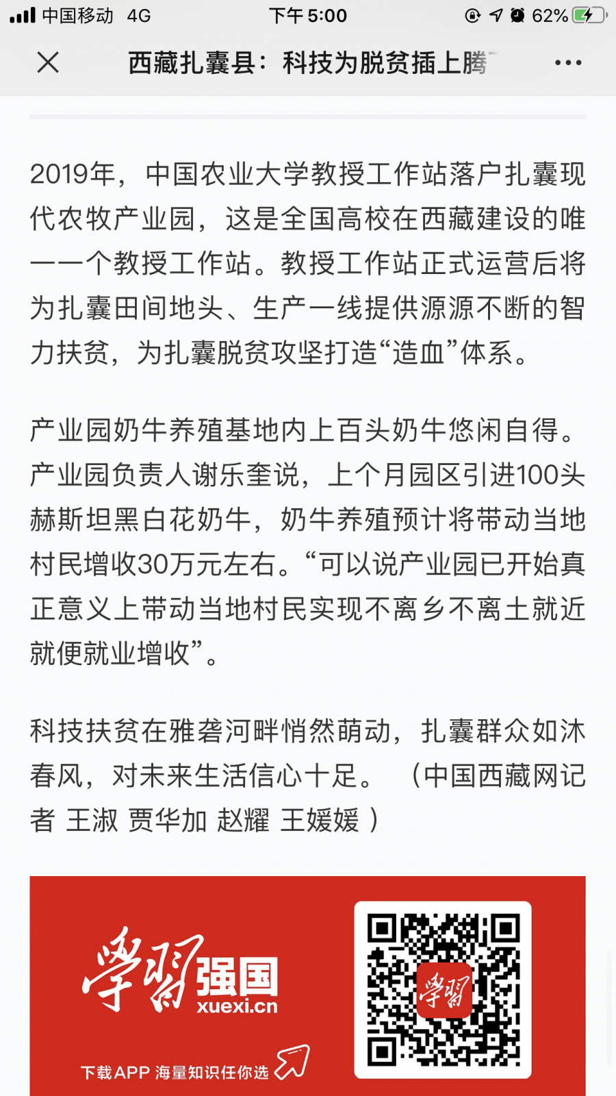 6月12日,一篇名為《西藏扎囊縣:科技為脫貧插上騰飛的翅膀》的文章登上“學(xué)習強國”-西藏學(xué)習平臺。文章中介紹了江平生物的扶貧項目----扎囊縣現代農牧產(chǎn)業(yè)園促進(jìn)扎囊縣農業(yè)生態(tài)環(huán)境良性循環(huán)、增收創(chuàng  )收、 穩定就業(yè)、培育人才等方面作出的貢獻。