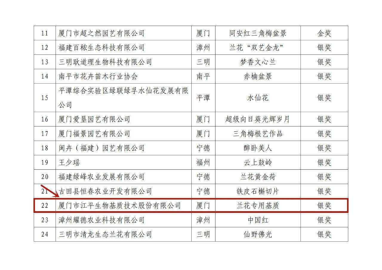 其中,我司蘭花專(zhuān)用基質(zhì)、多肉植物栽培基質(zhì)分別榮獲花卉類(lèi)銀獎、銅獎!