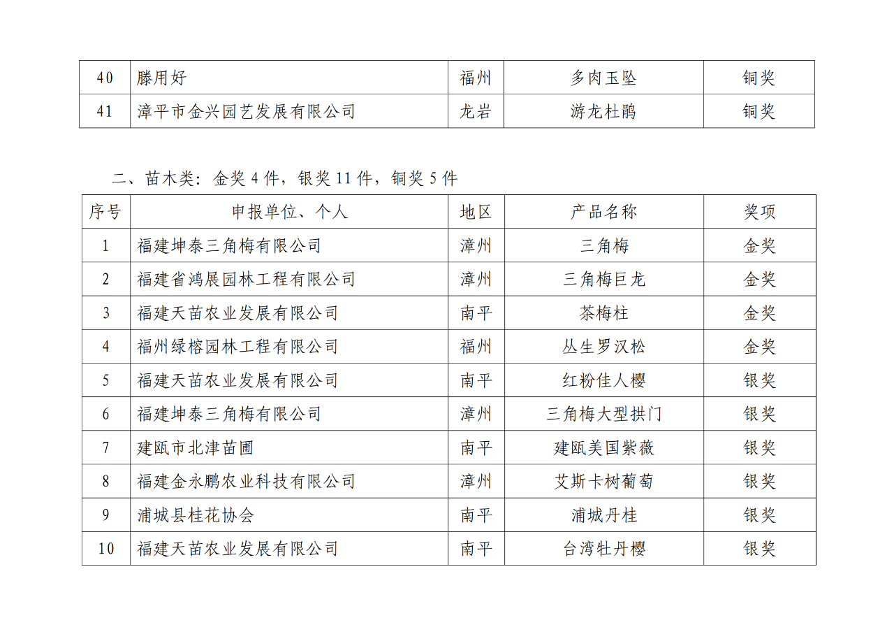 經(jīng)過(guò)線(xiàn)上線(xiàn)下綜合評審,活動(dòng)評選出花卉類(lèi)金獎產(chǎn)品 11 件,銀獎產(chǎn)品 13 件,銅獎產(chǎn)品 17 件;苗木類(lèi)金獎產(chǎn)品 4 件,銀獎產(chǎn)品 11 件,銅獎產(chǎn)品 5件;創(chuàng )新創(chuàng )意獎產(chǎn)品 5 件;優(yōu)秀獎產(chǎn)品 35 件;網(wǎng)絡(luò )人氣產(chǎn)品金獎 10件、銀獎 10 件、銅獎 10 件。