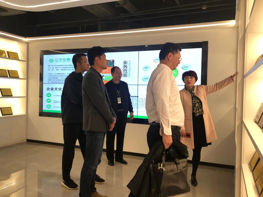 在夏總、吳總的帶領(lǐng)下,李銘處長(cháng)一行人先后參觀(guān)公司展廳、了解公司生物基質(zhì)系列產(chǎn)品,并通過(guò)江平生物科研創(chuàng  )新歷程對我司有了更進(jìn)一步的了解。