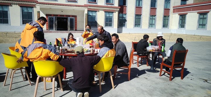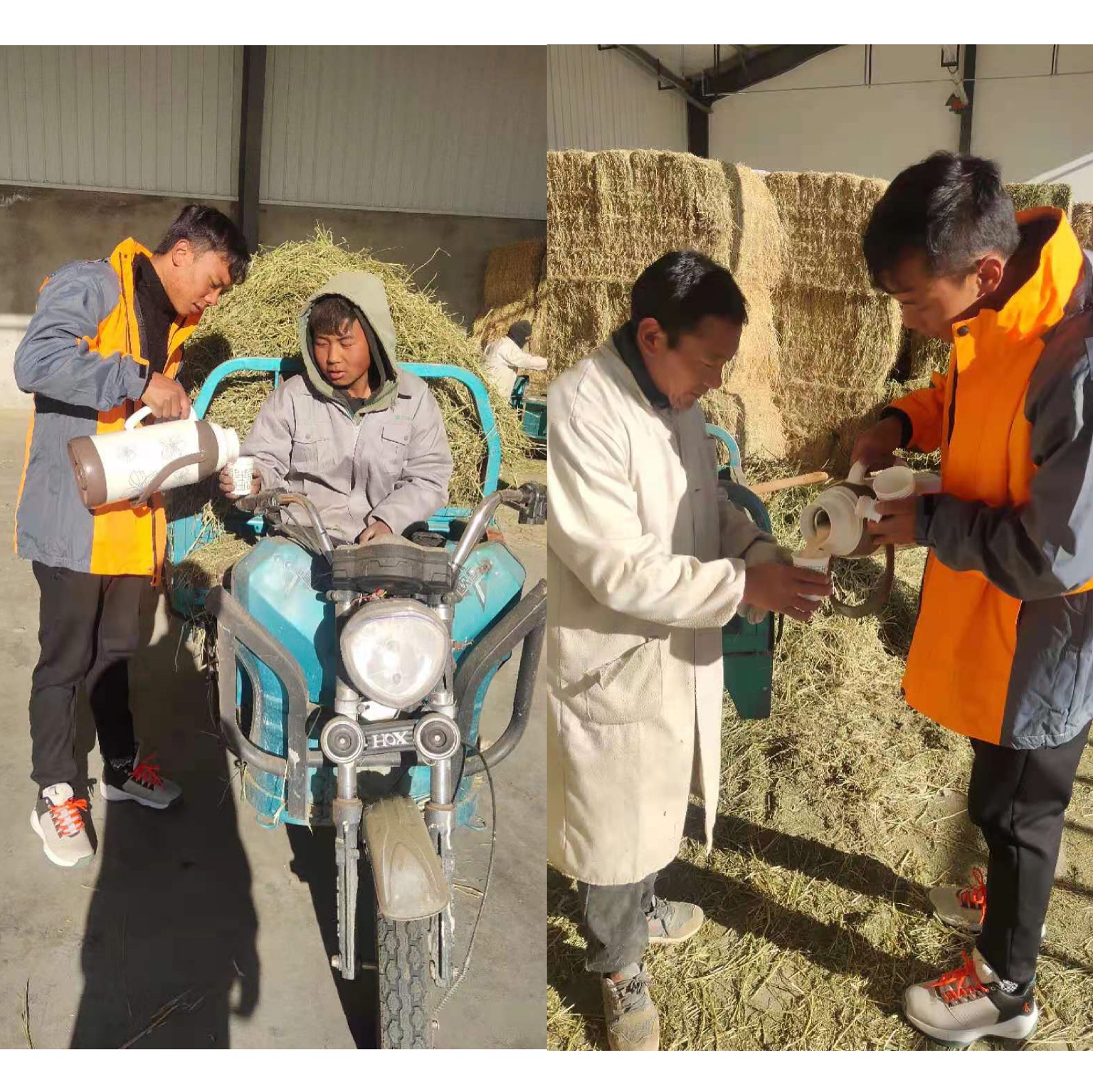 在忙碌的過(guò)程中,節日的氣氛也逐漸開(kāi)始濃厚。經(jīng)過(guò)了一上午的清掃后,大家圍在一起稍作休息,喝著(zhù)藏式風(fēng)情的酥油茶。同時(shí),我們也不忘給奶牛場(chǎng)的臨時(shí)工作人員倒上一杯茶,讓他們也感受到了節日的溫暖。