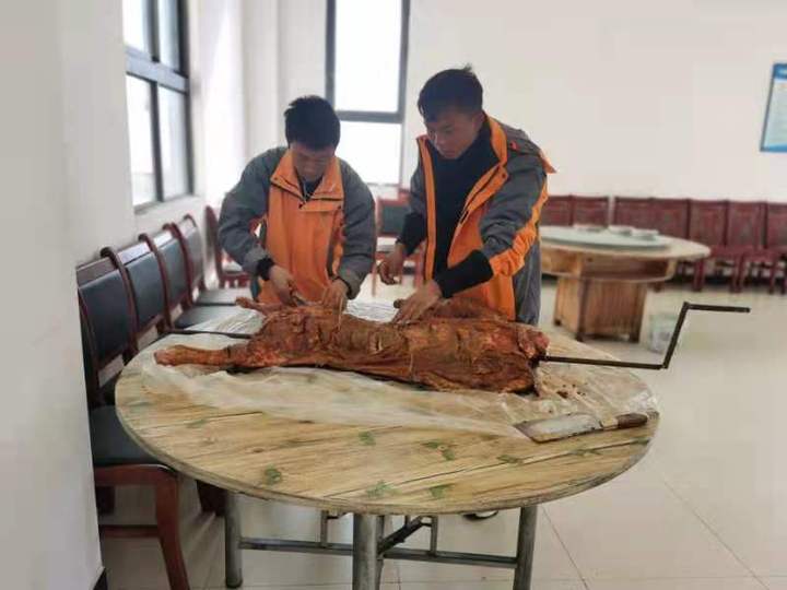 下午,大家又開(kāi)始忙活起來(lái):林主管負責給羊剝皮,其他員工負責準備食材,每個(gè)人都大顯身手,整個(gè)房間香氣四溢,一道道熱氣騰騰的菜肴被端上桌子,讓人望眼欲穿,大家都在期待舉起筷子的那個(gè)瞬間。