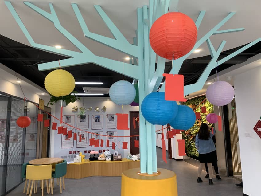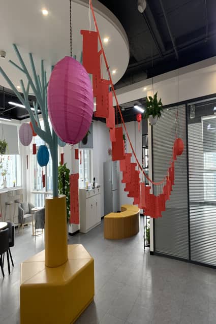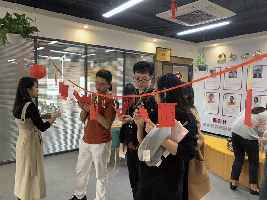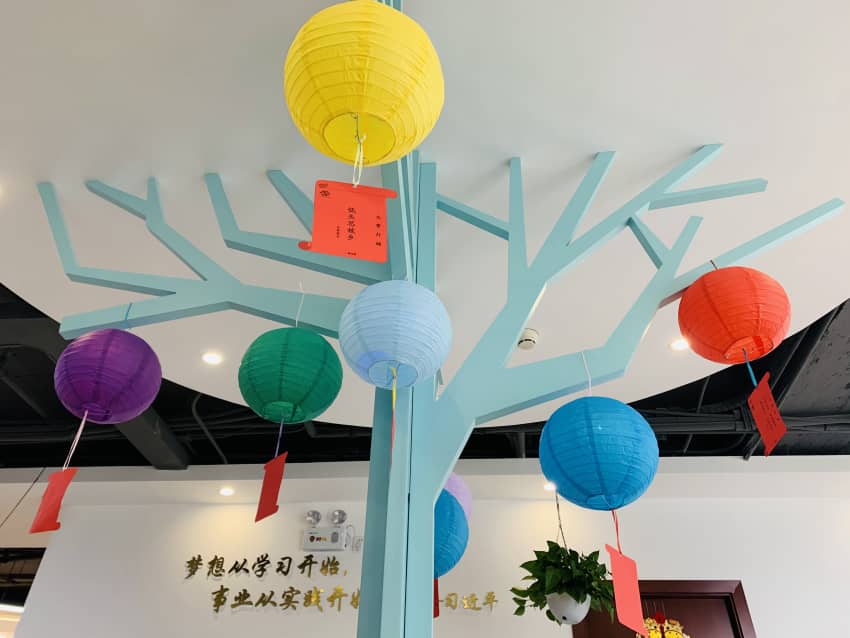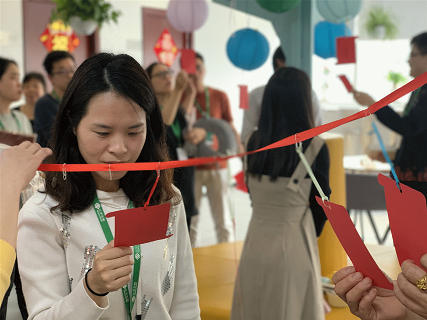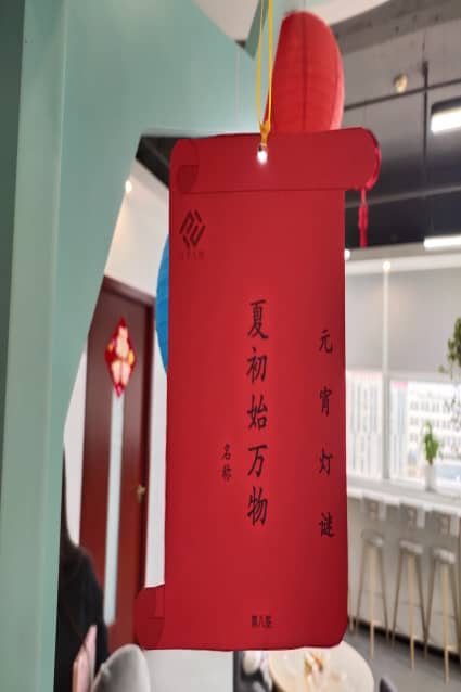 今天的休息區充滿(mǎn)歡聲笑語(yǔ),熱鬧非凡。燈籠+燈謎絕對是元宵節的氣氛組了,猜謎的歡笑聲、討論聲時(shí)不時(shí)傳入耳中,大家穿梭在燈謎區與禮品區,節日氛圍濃。