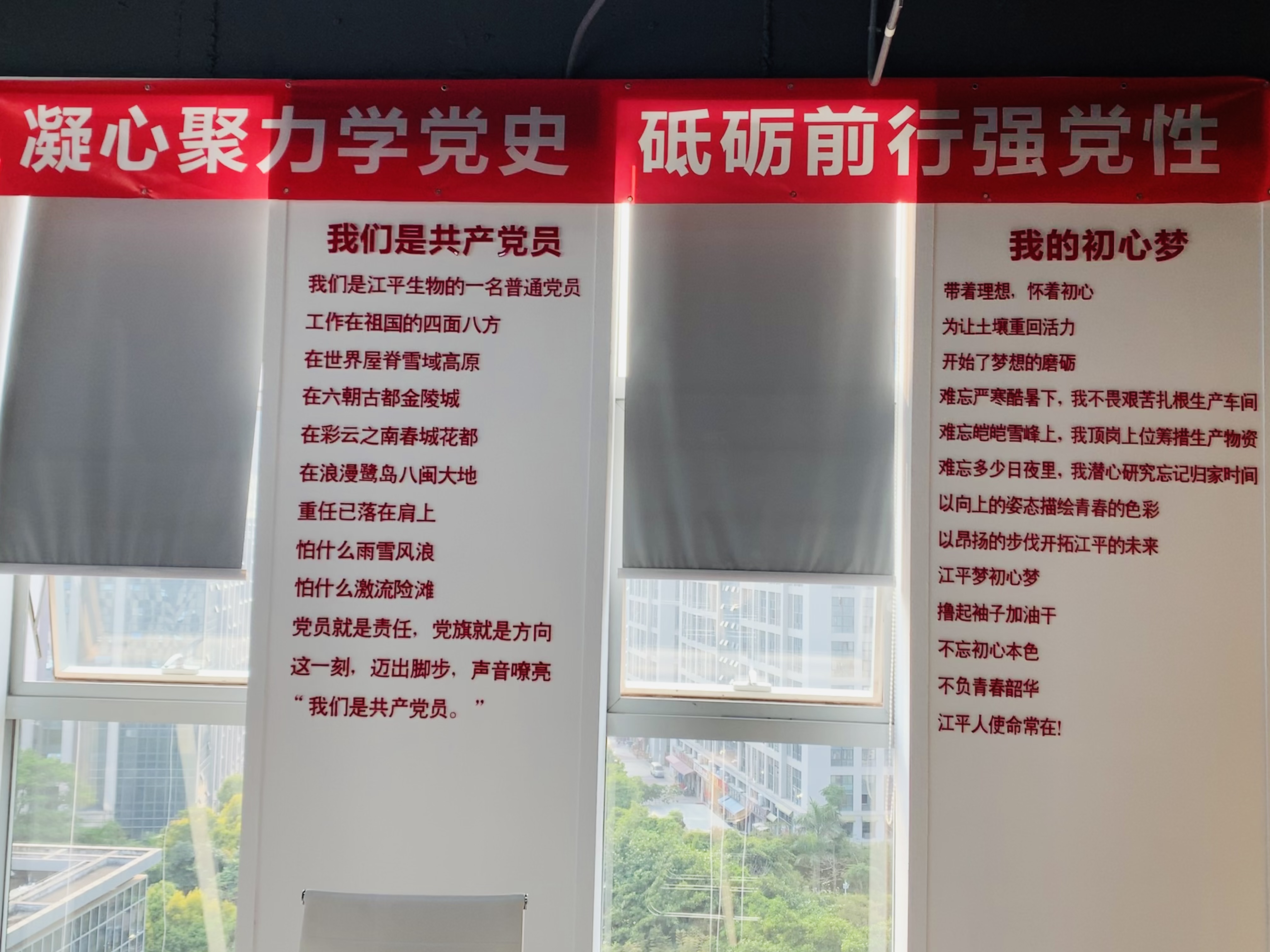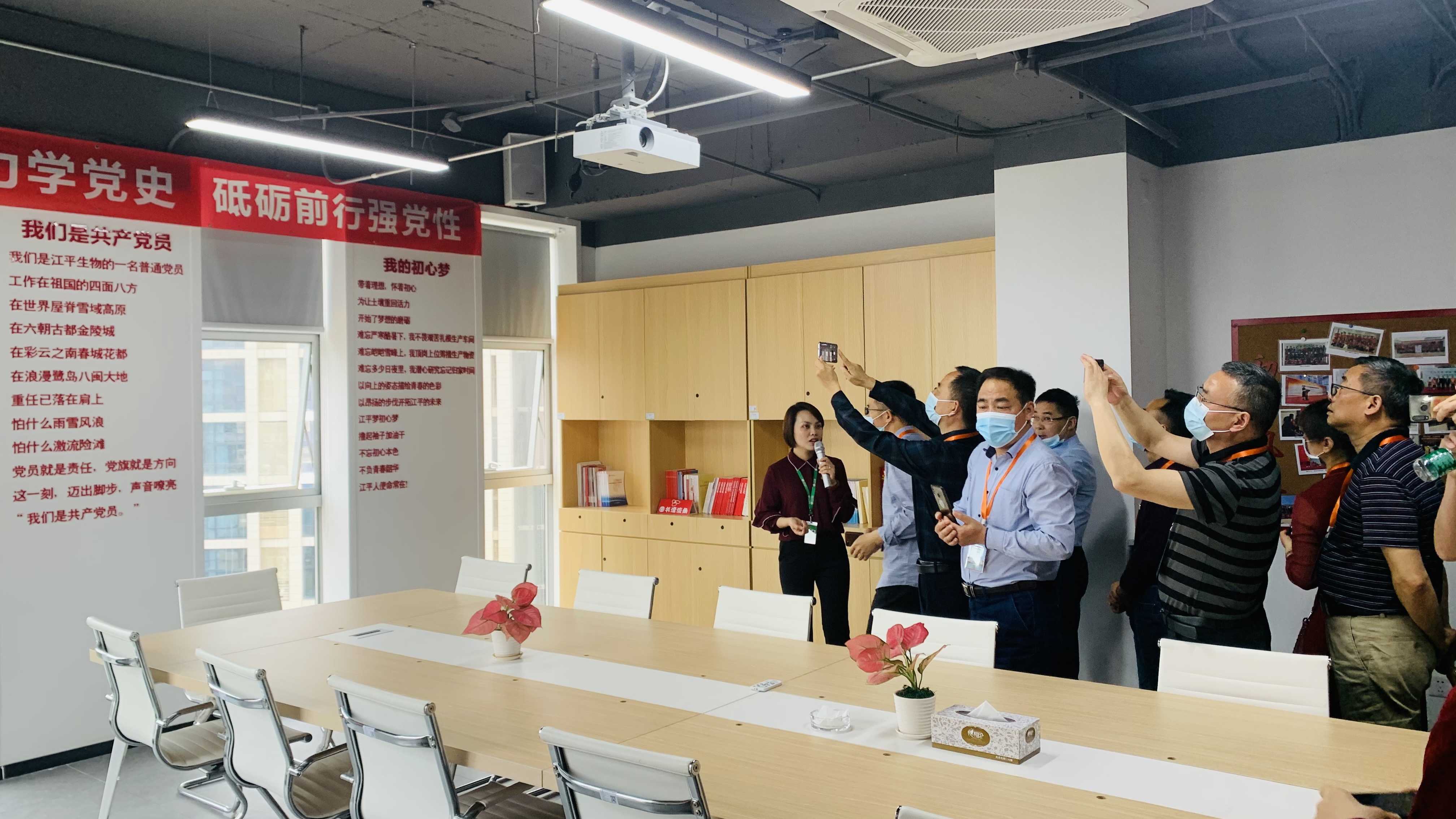 值得注意的是,位于江平生物黨建中心的植物黨徽墻吸引了眾多參觀(guān)者駐足,“這個(gè)是真正融入了企業(yè)本身的特色。”參觀(guān)者紛紛拿起手機拍下這特色的黨徽墻。最后走進(jìn)黨建室,映入眼簾的兩首江平生物自創(chuàng  )小詩(shī)更是激勵了每一位江平人,也感動(dòng)了每一位參觀(guān)者,引得現場(chǎng)響起不斷的熱烈掌聲。