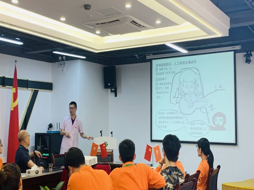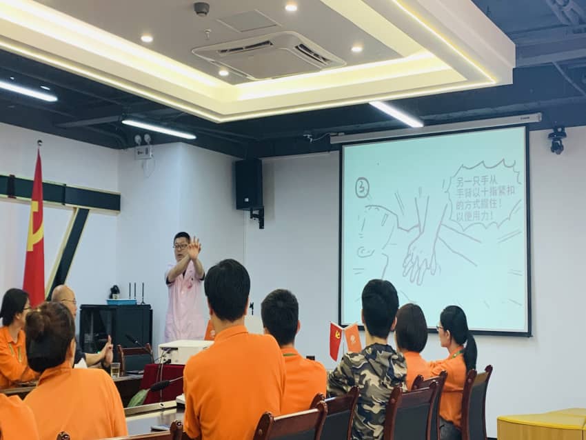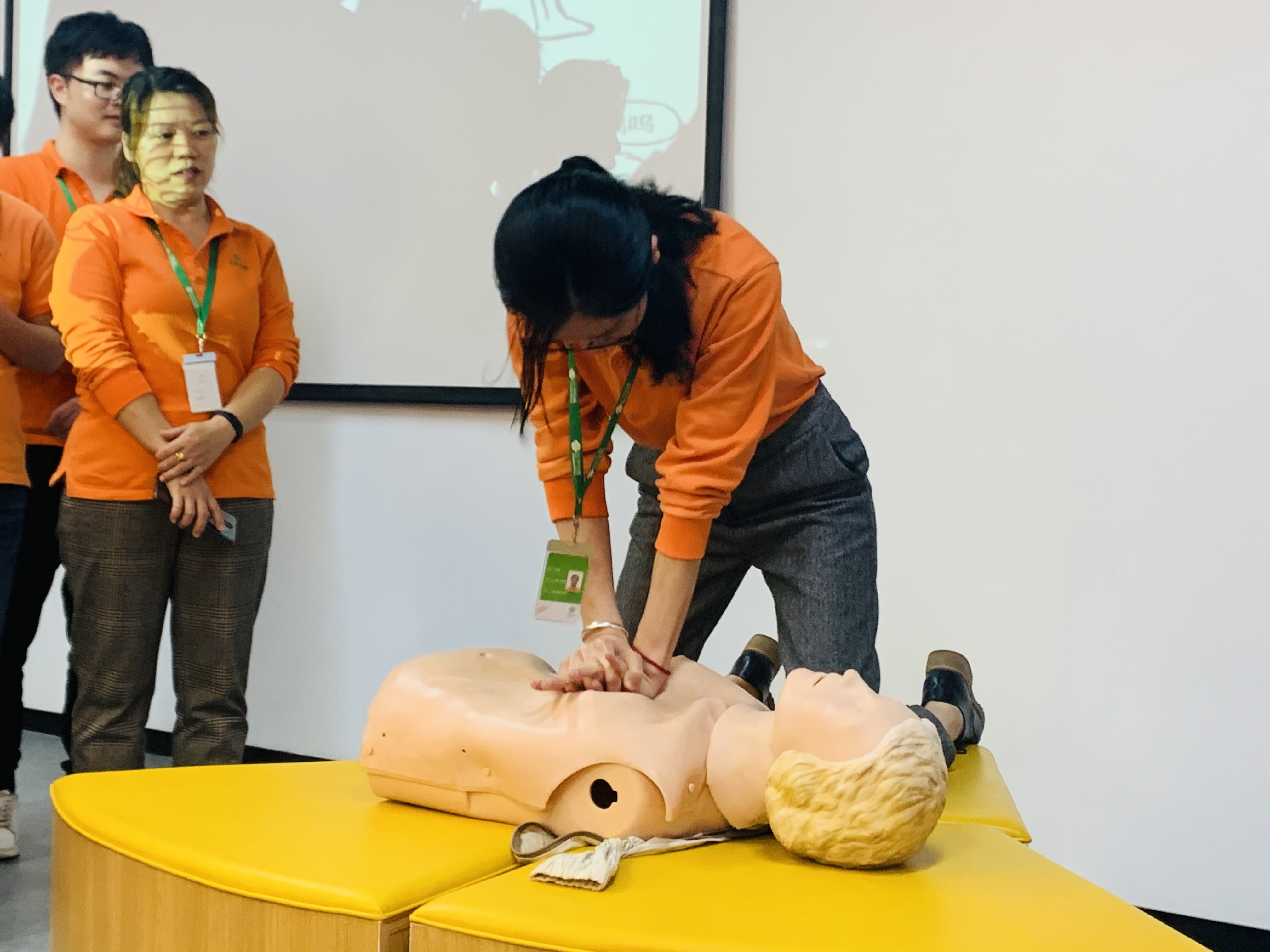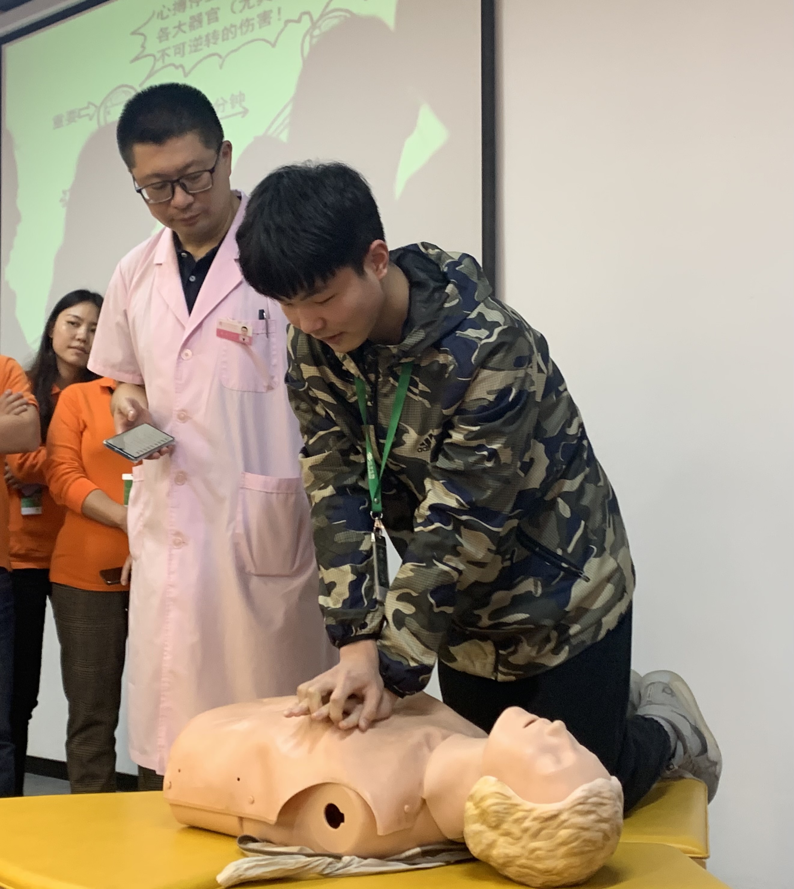 培訓現場(chǎng),戴奇醫師幽默風(fēng)趣的講解風(fēng)格吸引了大家。他向我們深入淺出地講述相關(guān)CPR知識、急救的要點(diǎn)與注意事項,并現場(chǎng)示范具體操作要領(lǐng)。