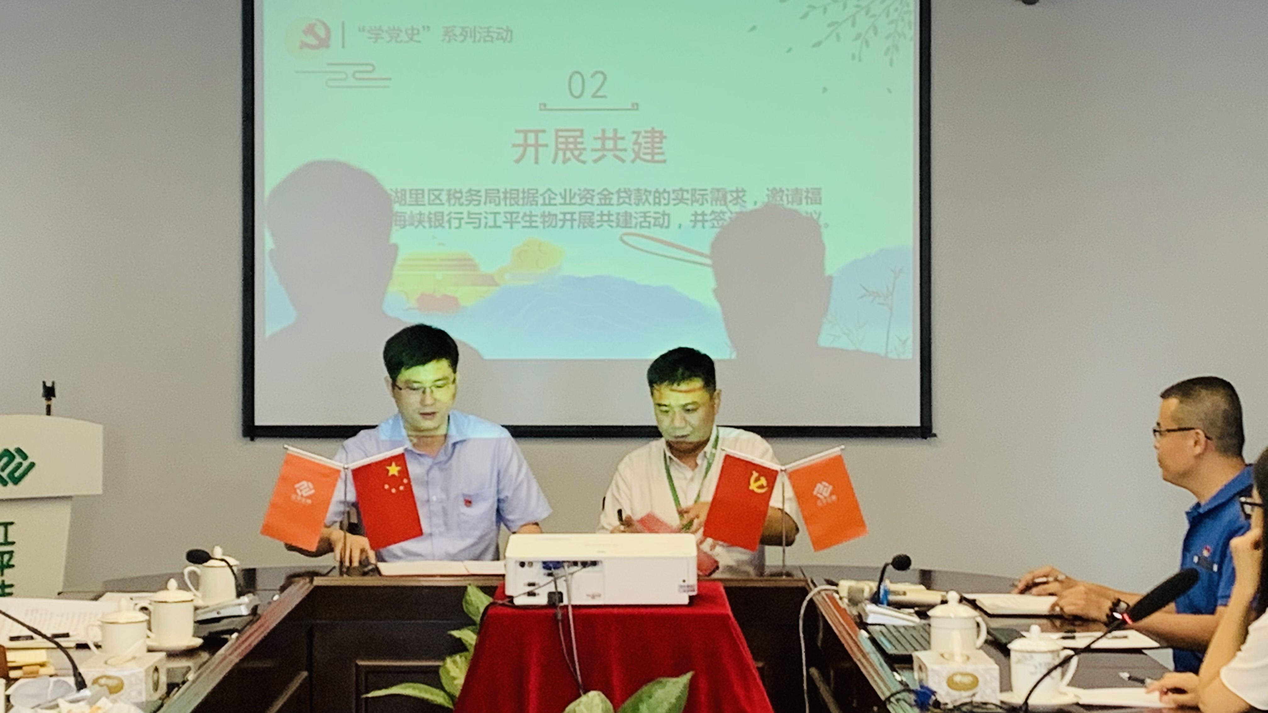 在稅務(wù)局領(lǐng)導的見(jiàn)證下,銀企雙方代表簽訂共建合作協(xié)議