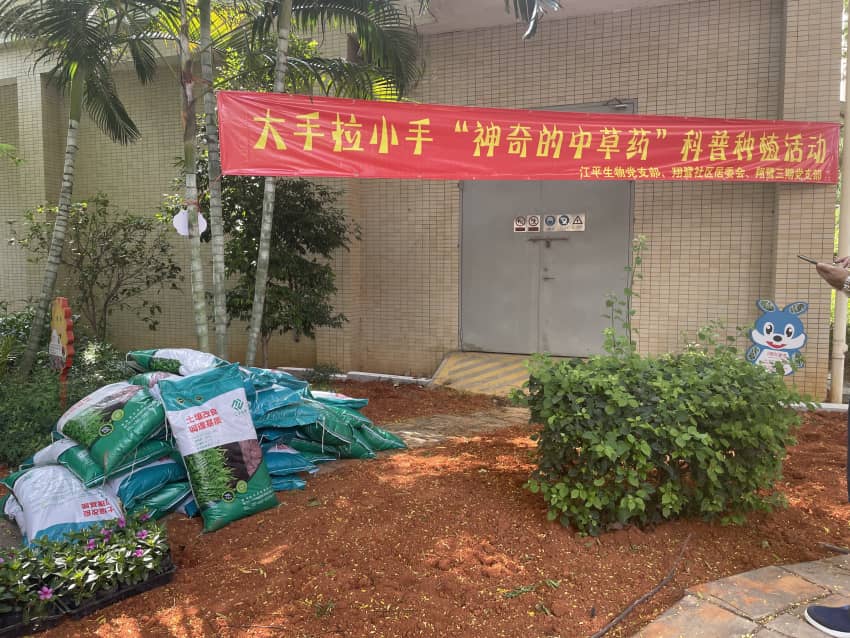 為使青少年能積極與小區環(huán)境“對話(huà)”,主動(dòng)參與小區美化環(huán)境活動(dòng)中去,親身體驗勞動(dòng)的樂(lè )趣,感受美化環(huán)境的意義,樹(shù)立“綠水青山就是金山銀山的”科學(xué)理念,6月19日上午,江平生物黨支部與共建單位翔鷺社區翔鷺三期黨支部開(kāi)展“大手拉小手‘神奇的中草藥’科普種植活動(dòng)”,為小區提供土壤改良調理基質(zhì)。小區黨員和孩子們一起在垃圾分類(lèi)實(shí)踐基地種植中草藥和花苗,并用廚余垃圾制作的有機肥料培土和施肥。