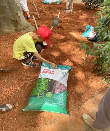 經(jīng)過(guò)理論知識的培訓后,黨員帶著(zhù)孩子們一同下到實(shí)踐基地,在黨員的帶領(lǐng)下,孩子們也紛紛扛起了鋤頭和鏟子,有的加基質(zhì)、有的翻土和泥,忙的不亦樂(lè )乎,臉上寫(xiě)滿(mǎn)了花一般的燦爛……