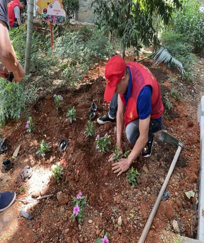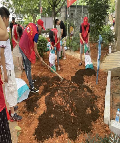 活動(dòng)開(kāi)始,我司黨支部書(shū)記文笑協(xié)同我司種植專(zhuān)家劉與明、堆肥專(zhuān)家林明月為小區提供堆肥制作指導,并對日常綠化培土施肥養護、修剪樹(shù)枝保證基地陽(yáng)光充足等方面的提出專(zhuān)業(yè)建議。