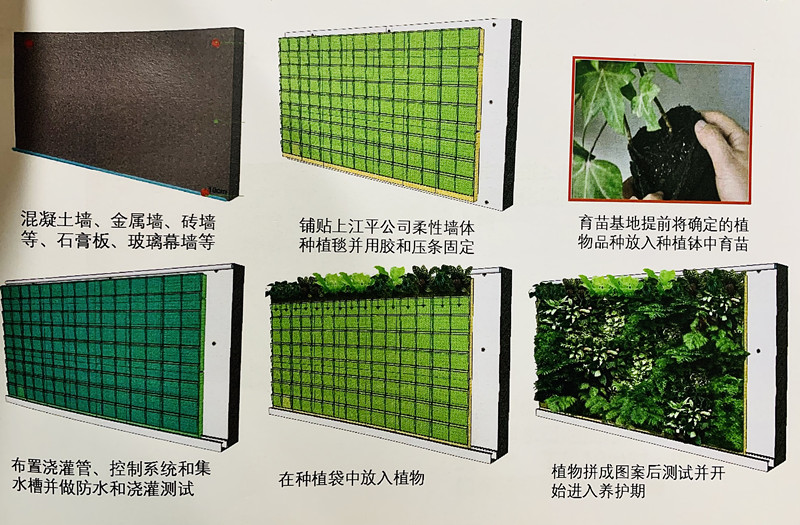 ②鋪貼上江平生物柔性墻體種植毯并用膠和壓條固定