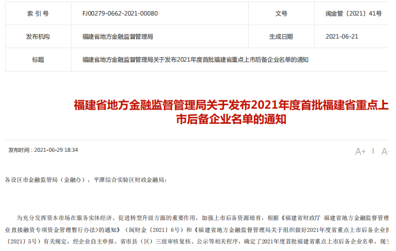 ?2021年度首批福建省重點(diǎn)上市后備企業(yè)(福建省地方金融監督管理局)