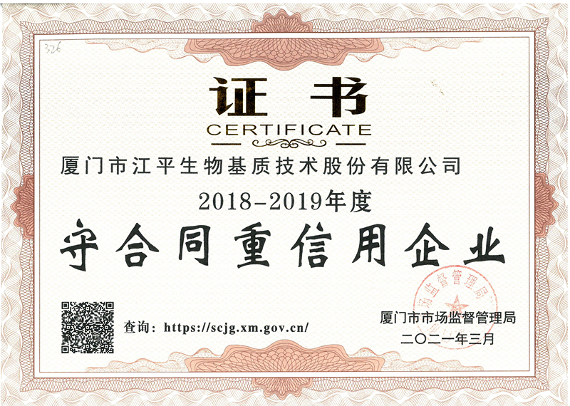 ?2018-2019年度守合同重信用企業(yè)(廈門(mén)市市場(chǎng)監督管理局)