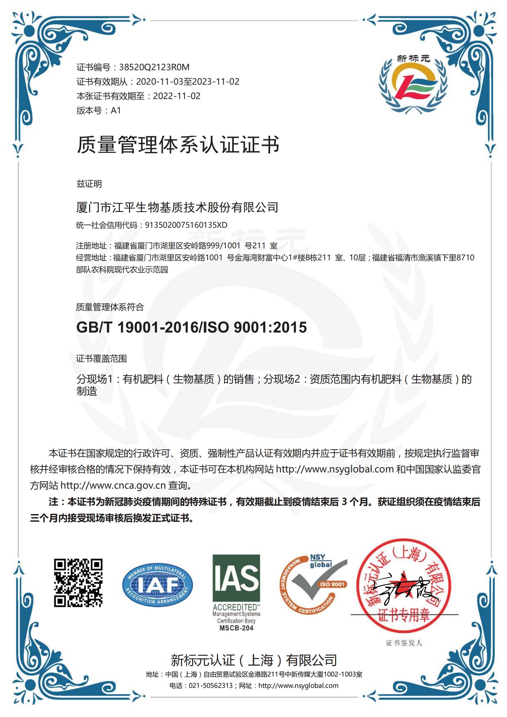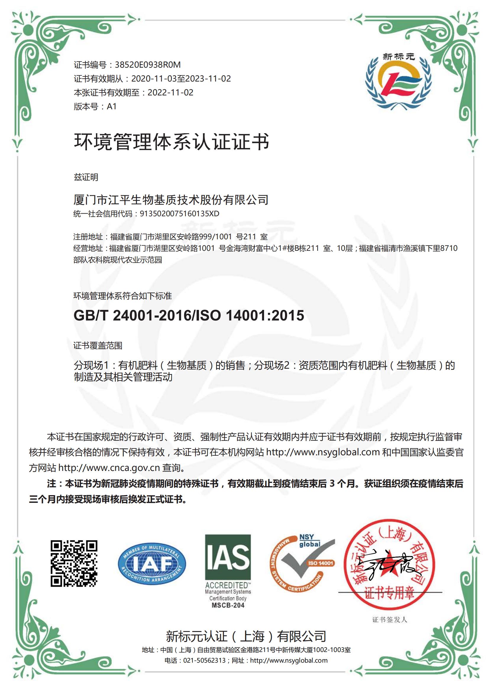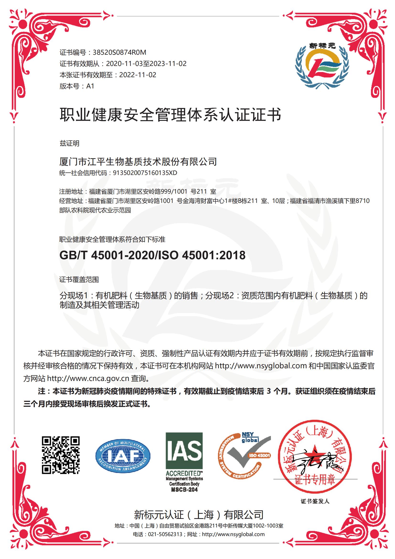?通過(guò)ISO 14001環(huán)境管理體系、ISO 9001質(zhì)量管理體系、ISO 45001職業(yè)健康安全管理體系認證。