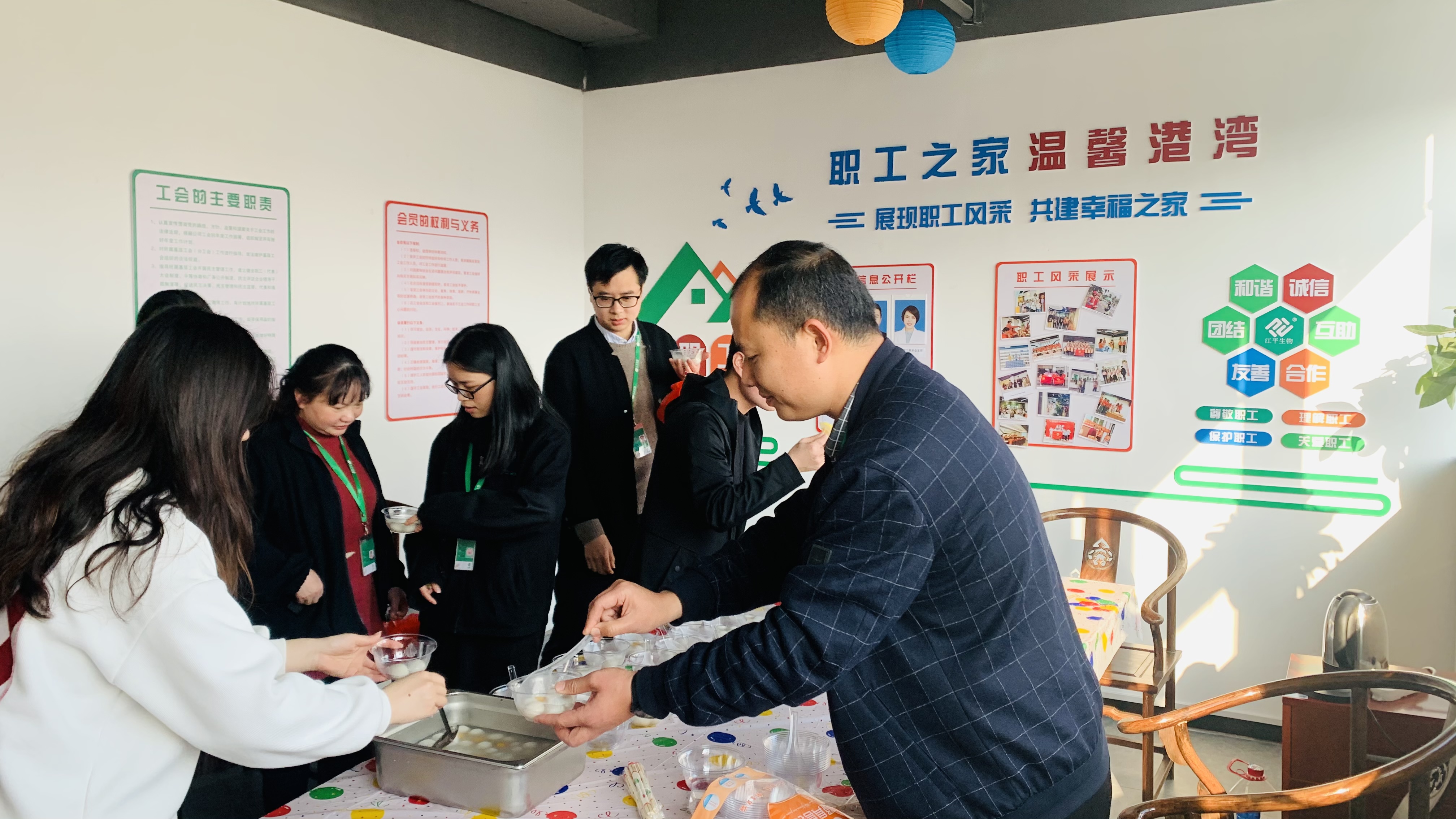 當日下午,不僅有熱騰騰的湯圓,還有香噴噴的水餃,公司工會(huì )主席吳凱親自“送溫暖”,感謝現場(chǎng)每一位為江平筑夢(mèng)的員工,祝大家元宵快樂(lè )!
