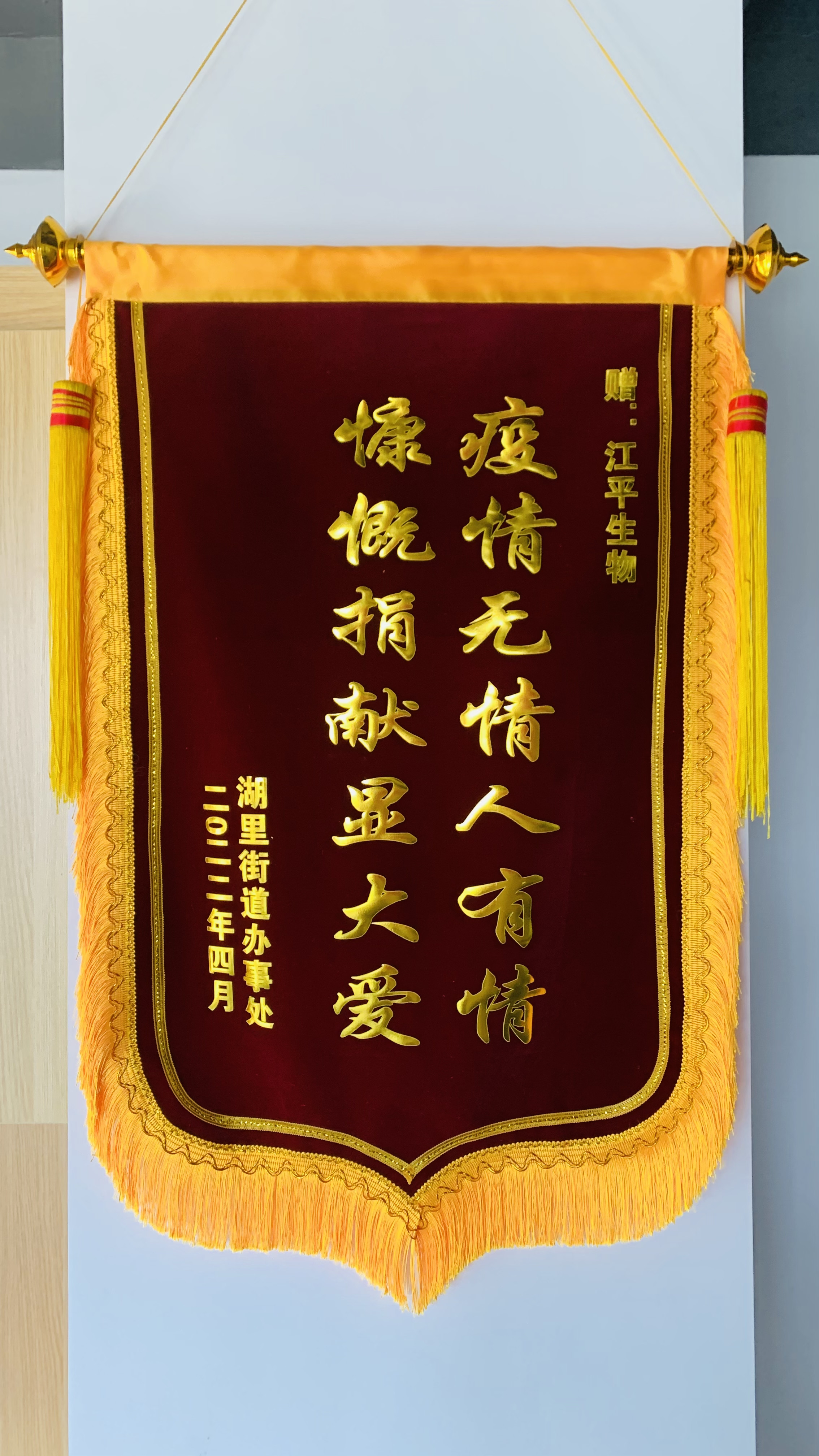 “疫情無(wú)情人有情,慷慨捐獻顯大愛(ài)”。近日,后鋪社區為江平生物送上了一面錦旗,錦旗上的這兩句話(huà),凝聚了對我司在疫情期間愛(ài)心捐贈行為的感謝之情。江平生物副總裁吳凱同志帶領(lǐng)公司黨員到后埔社區現場(chǎng)接收了這一份肯定。