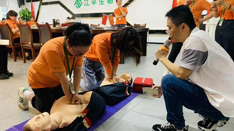 為了讓員工掌握急救知識和基本操作技能,從而提高生活應急能力,5月12日下午,江平生物在廈門(mén)總部開(kāi)展了“急救知識科普與技能”培訓。本次培訓特邀講師唯愛(ài)普健康與急救基地邱澤寰為公司總部員工進(jìn)行現場(chǎng)授課,漳州工廠(chǎng)、漁溪工廠(chǎng)、光澤工廠(chǎng)、江雅工廠(chǎng)、種植基地員工以視頻連線(xiàn)方式參加。
