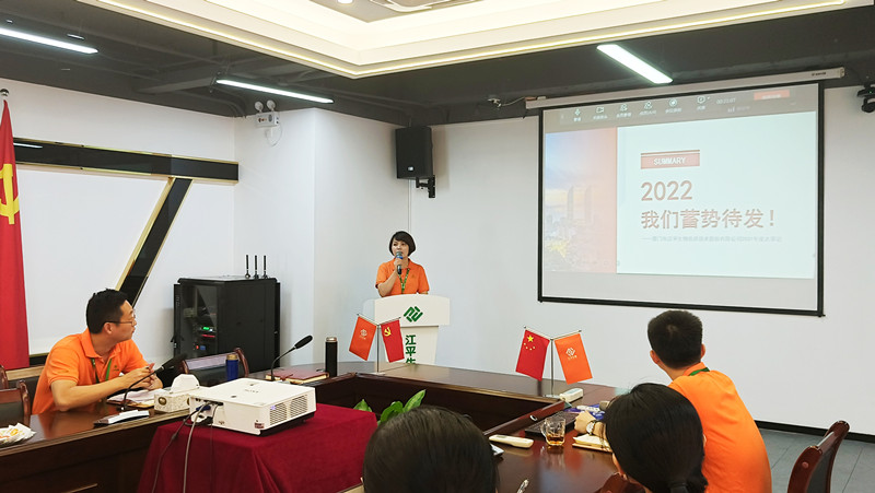 人事行政部總經(jīng)理戴燕芳以“2022,我們蓄勢待發(fā)”為題,圍繞2021年度十大亮點(diǎn)與在座新員工分享了公司2021年的精彩事記。