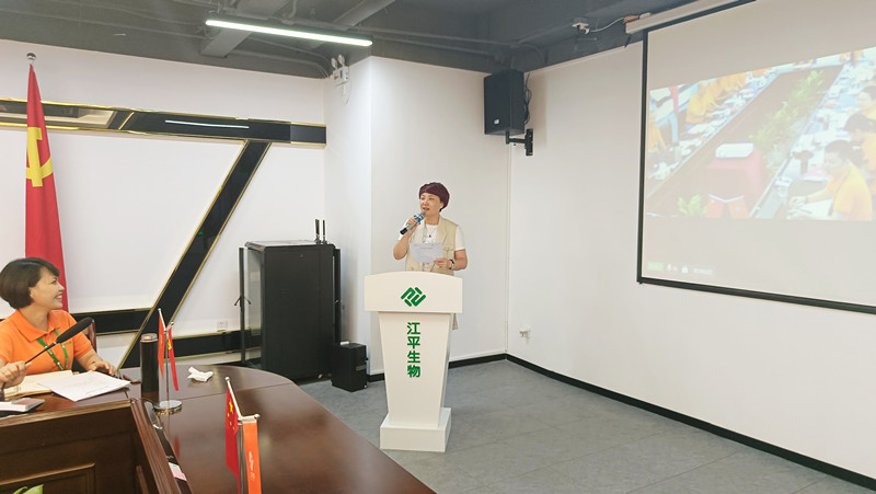 “歡迎加入江平,感謝選擇江平?!惫径麻L(cháng)夏江平對新進(jìn)員工表示熱烈歡迎,并分享了江平生物十九年走來(lái)的發(fā)展、成果、情懷等。
