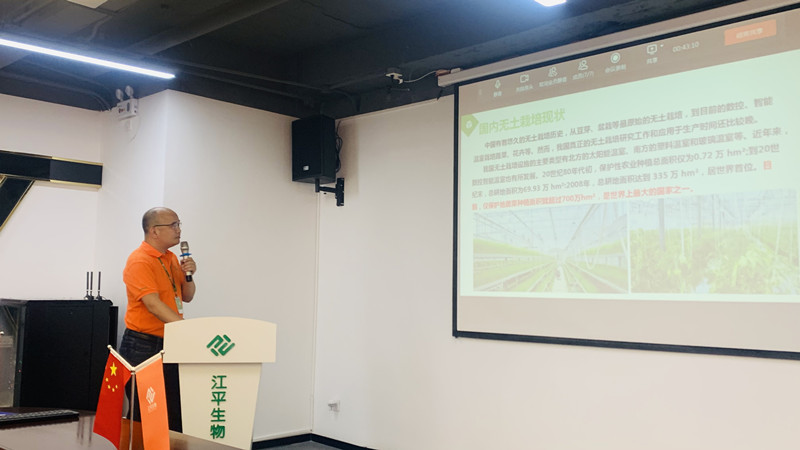 為提升員工對現代農業(yè)種植及無(wú)土栽培技術(shù)的認識,7月19日,江平生物在廈門(mén)總部開(kāi)展了一場(chǎng)“現代農業(yè)種植之無(wú)土栽培”講座,由種植事業(yè)部總經(jīng)理黃智雄激情開(kāi)講,帶領(lǐng)現場(chǎng)及線(xiàn)上的員工們走進(jìn)無(wú)土栽培的世界~