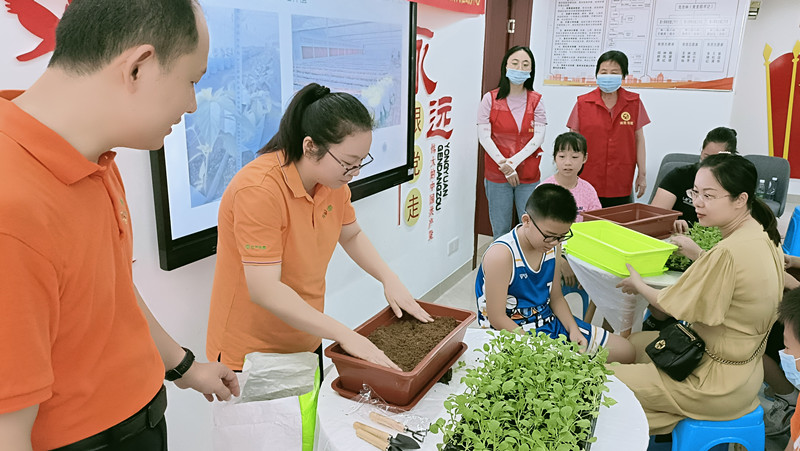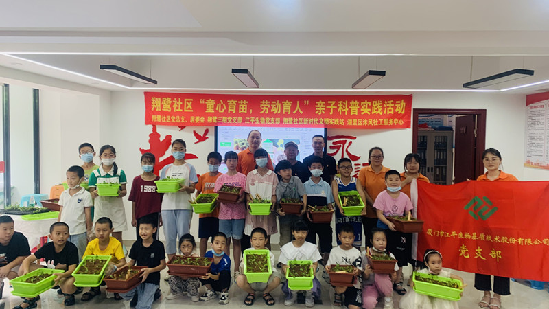 為增強社企黨建工作活力,7月27日,江平生物黨支部與翔鷺社區黨總支、翔鷺三期黨支部及沐風(fēng)社工聯(lián)合開(kāi)展“童心育苗,勞動(dòng)育人”親子科普實(shí)踐活動(dòng),為25個(gè)小區親子家庭進(jìn)行蔬菜標準化基質(zhì)栽培技術(shù)知識科普及現場(chǎng)綠葉菜無(wú)土栽培種植教學(xué)。