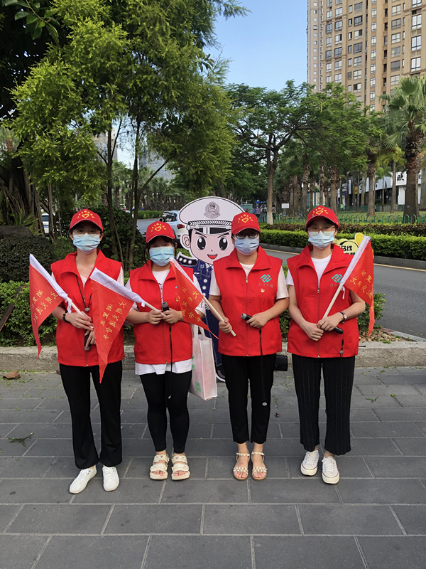 圖為張玉(右一)、鄭慧娟(左一)積極投身文明交通督導志愿行動(dòng)