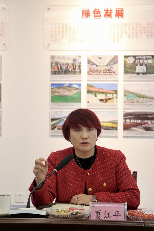 座談會(huì )上,江平生物董事長(cháng)夏江平向考察團一行展開(kāi)說(shuō)明企業(yè)戰略、產(chǎn)業(yè)布局、發(fā)展規劃等情況。
