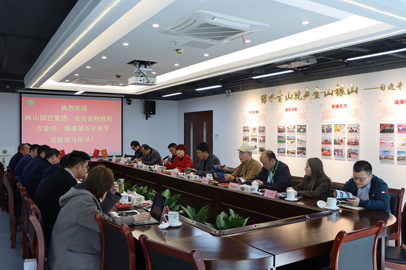 2月16日,浙江安吉兩山國控黨委書(shū)記、董事長(cháng)鄒進(jìn),梅溪鎮黨委副書(shū)記、鎮長(cháng)朱越峰,梅溪鎮黨委委員、副鎮長(cháng)汪鑫,安吉縣財政局黨委委員、副局長(cháng)劉清,安吉縣農業(yè)局黨委委員、副局長(cháng)吳旭東及相關(guān)部門(mén)人員一行到訪(fǎng)我司,深入考察企業(yè)整體情況。江平生物董事長(cháng)夏江平率全體高層熱情接待。