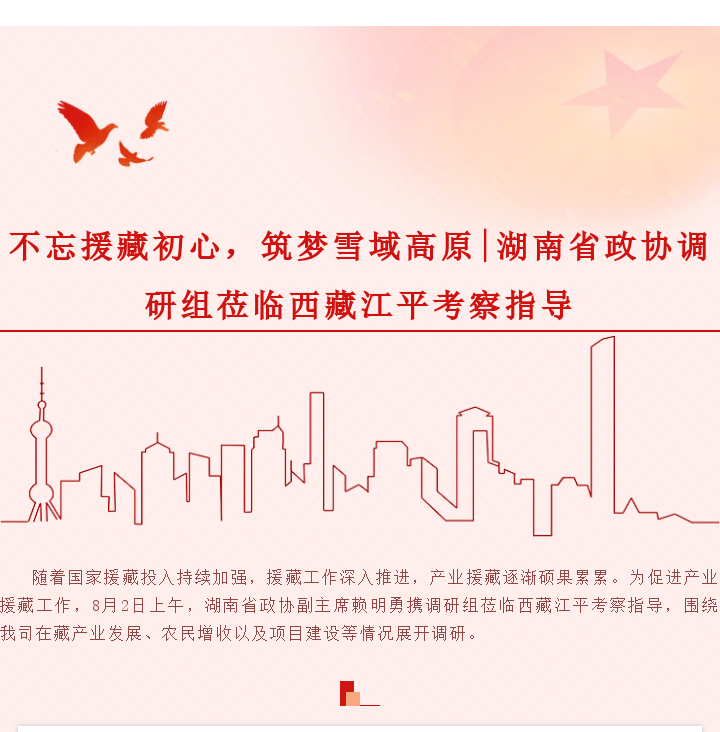 不忘援藏初心,筑夢(mèng)雪域高原|湖南省政協(xié)調研組蒞臨西藏江平考察指導