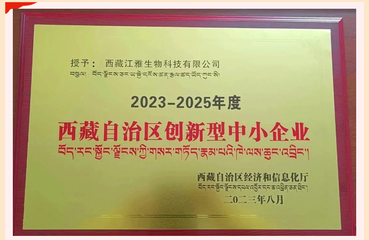 喜訊 西藏江雅榮獲“西藏自治區創(chuàng )新型中小企業(yè)”稱(chēng)號