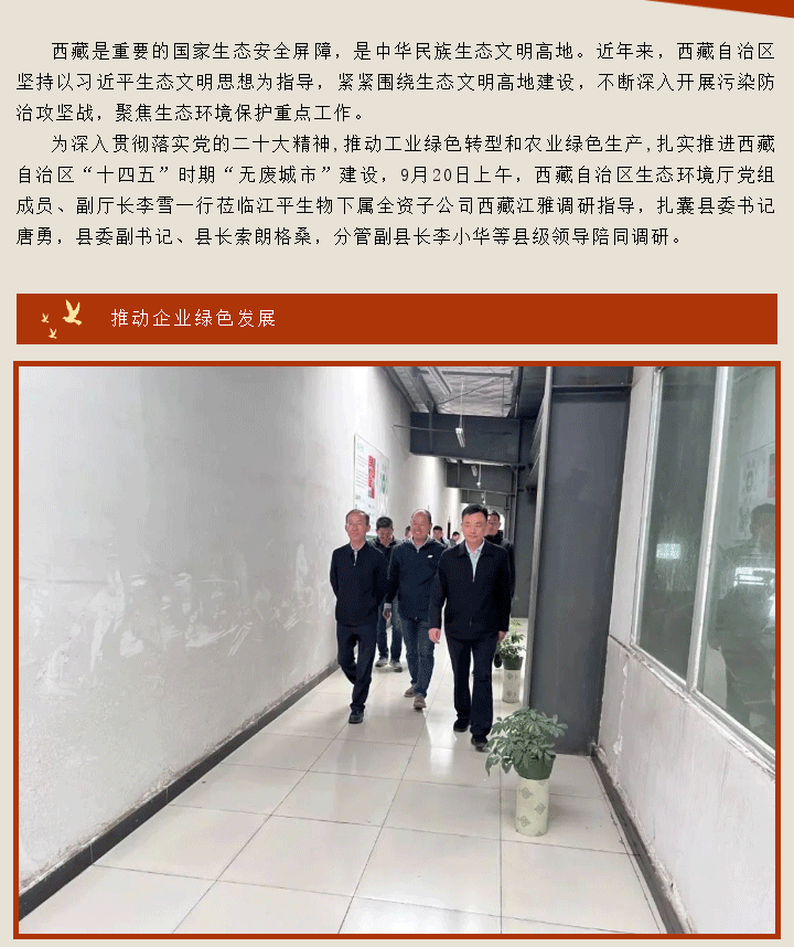 推動(dòng)企業(yè)綠色發(fā)展,助力生態(tài)文明建設-西藏自治區生態(tài)環(huán)境廳領(lǐng)導一行蒞臨西藏江雅調研指導