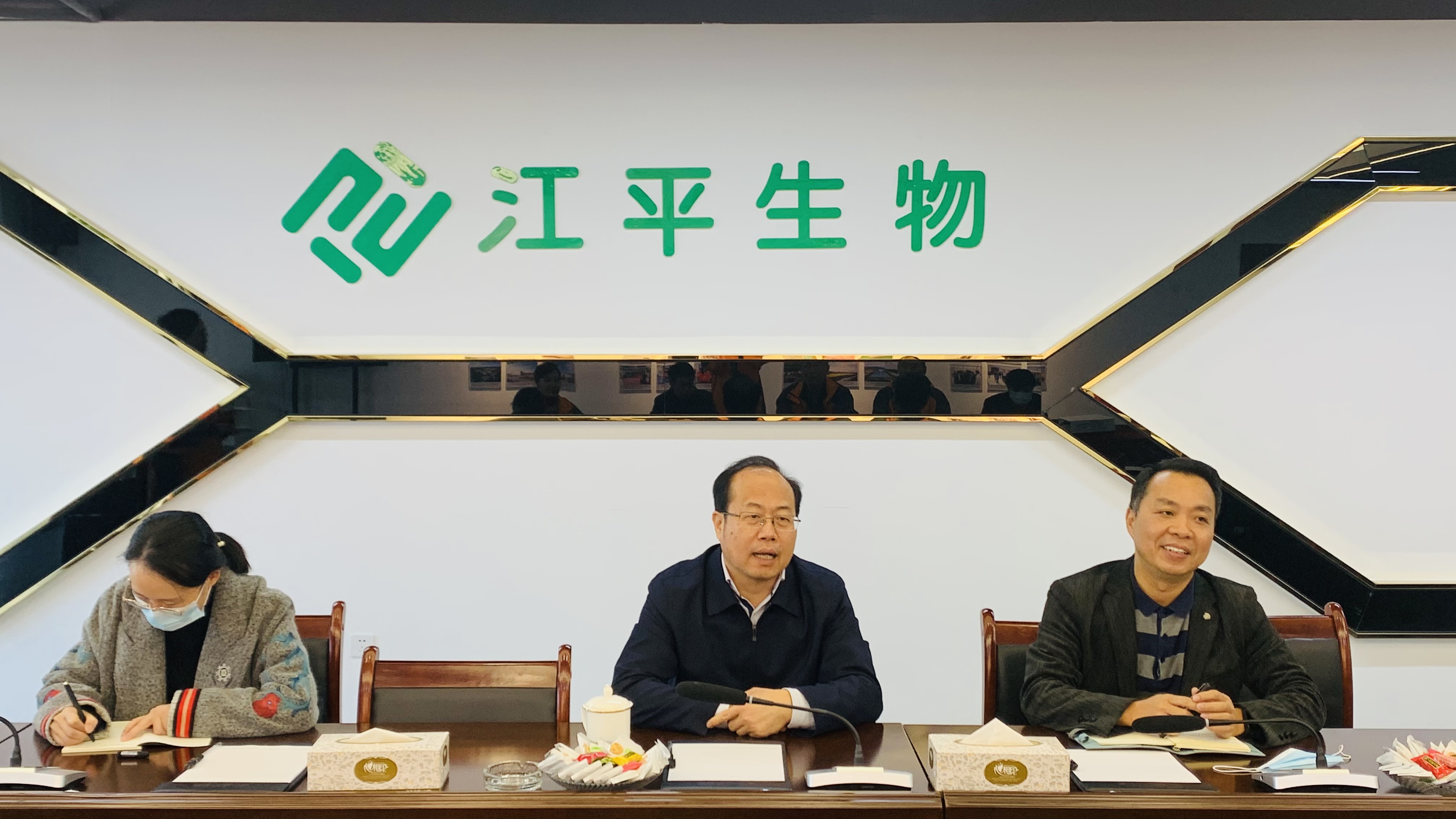 廈門(mén)企業(yè)和企業(yè)家聯(lián)合會(huì )會(huì )長(cháng)王龍雛蒞臨江平生物授牌