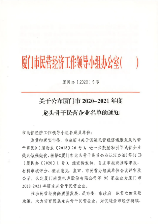 廈門(mén)市2020-2021年度龍頭骨干民營(yíng)企業(yè)名單新鮮出爐,江平生物上榜!