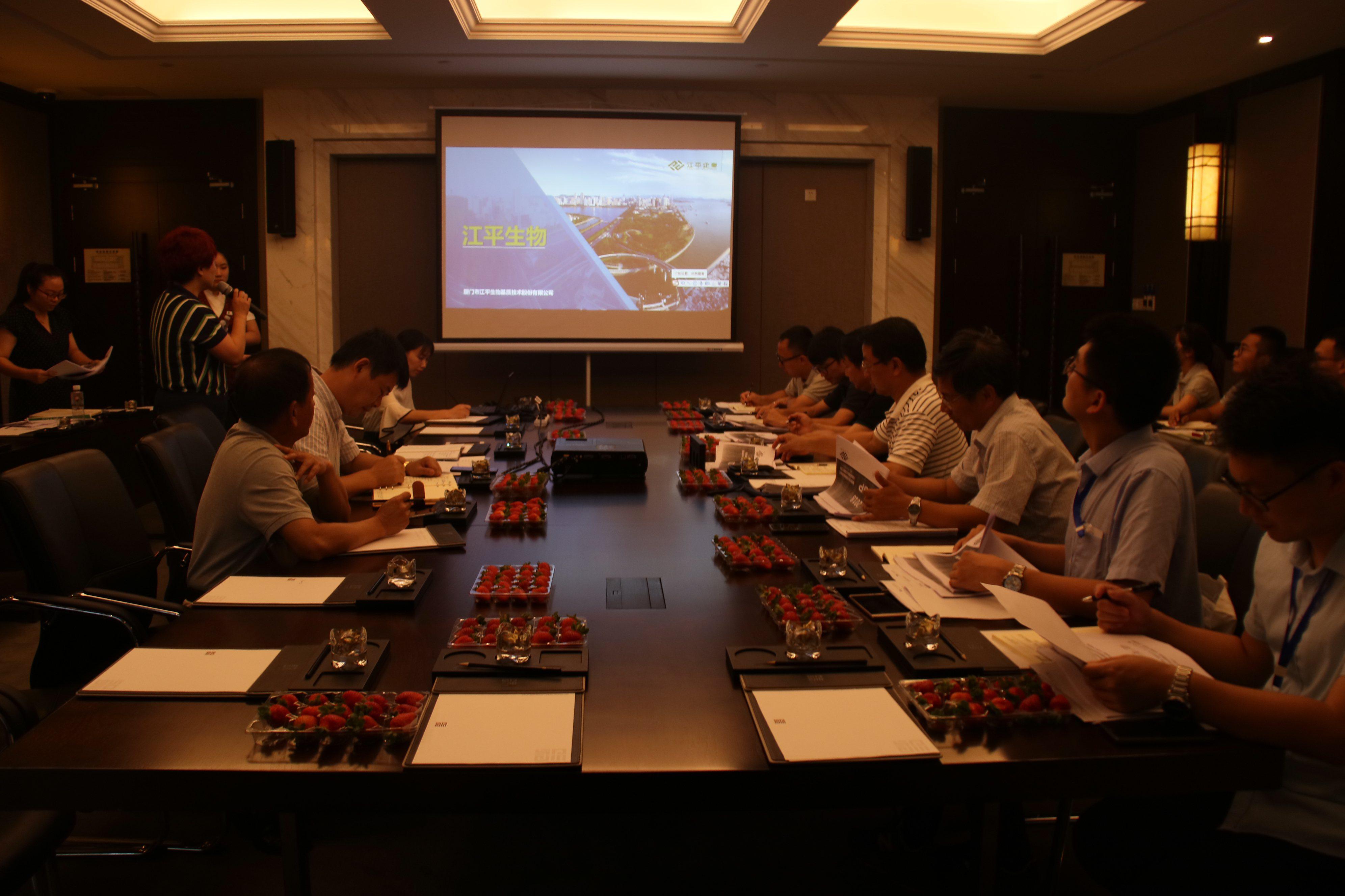 8月14日,湖里區禾山街道經(jīng)濟服務(wù)處駱炎輝主任一行走訪(fǎng)江平生物,夏江平董事長(cháng)進(jìn)行相關(guān)介紹。