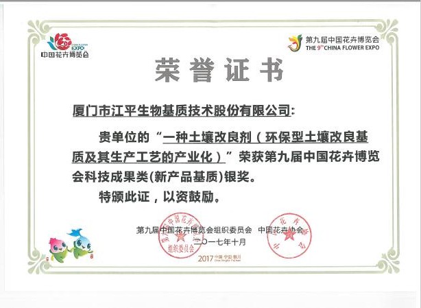 我司基質(zhì)榮獲中國花卉博覽會(huì )科技成果獎